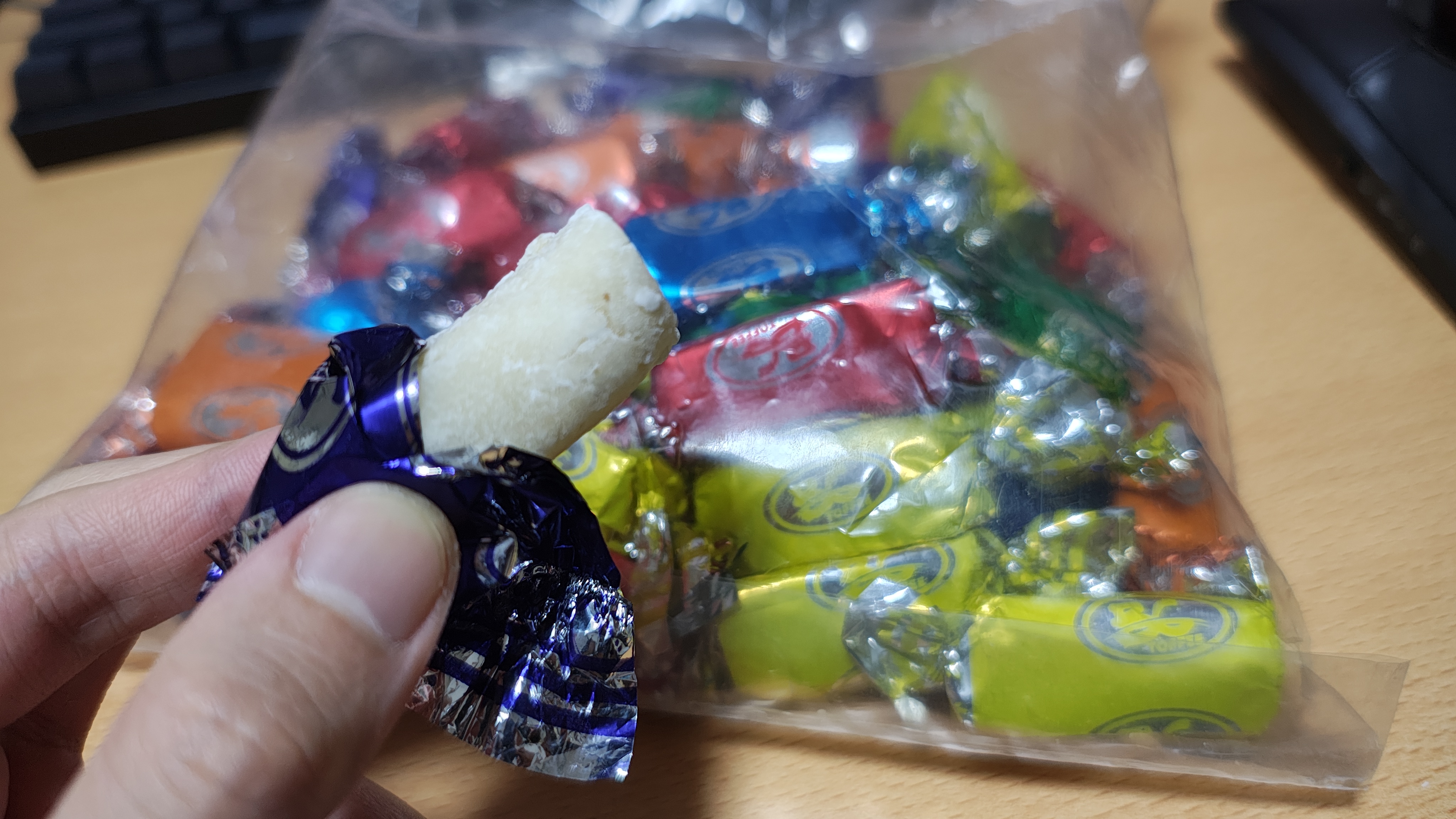 ネパールのお菓子。包装を剥くと白い塊が現れる。どの色の包装も中身は同じ。原材料と匂いからココナッツミルク的な味を想像する。だが口に含んだ途端、圧倒的物量の砂糖軍が瞬く間に味蕾を制圧せしめてしまい、ココナッツミルク的な要素はまるで感じられない。終戦後に形成される評議会の席もきっと砂糖陣営で占められるに違いない。