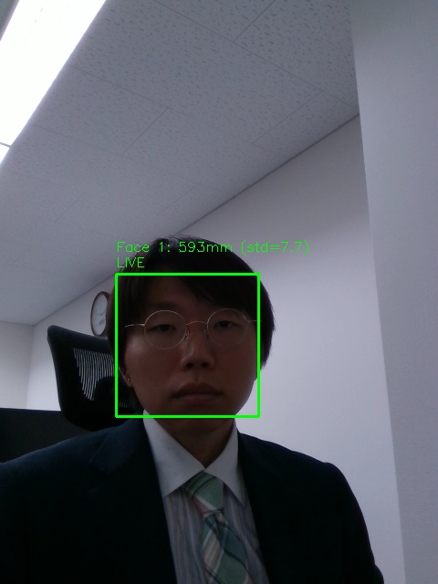 ついでに端末のカメラ機能も検証しておく。OpenCVのV4L2バックエンドを利用して比較的簡単に取得できた。顔認識も機能している。ただし、期待していたほど精度は良くない。少しでも離れると顔認識に失敗したり、あるいは顔を捉えていてもFalse判定だったりする。何度か試してやっと疲れ気味の中年サラリーマンの顔面が激写された。