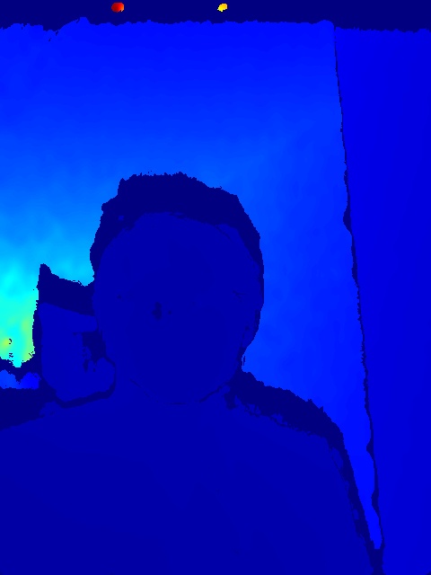 端末のカメラにはDepth画像(Z16フォーマット)を撮影する機能も備わっており、これはlinuxpyライブラリを利用して取得できた。顔写真等による不正な照合を防ぐためのものだが、僕の顔がのっぺりしすぎているとかでなければなんだか青すぎる(深度があまり出ていない)気がする。